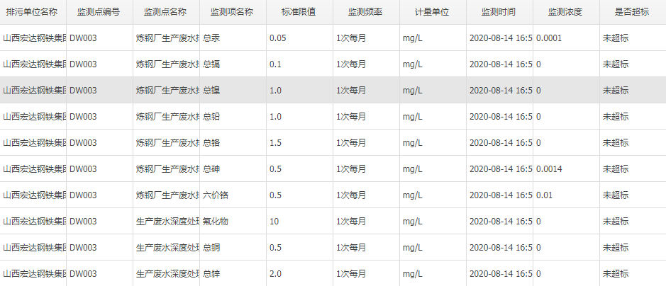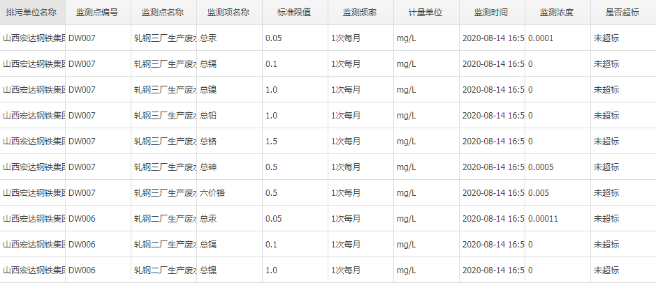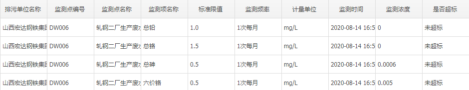 2020年八月份自行监测数据